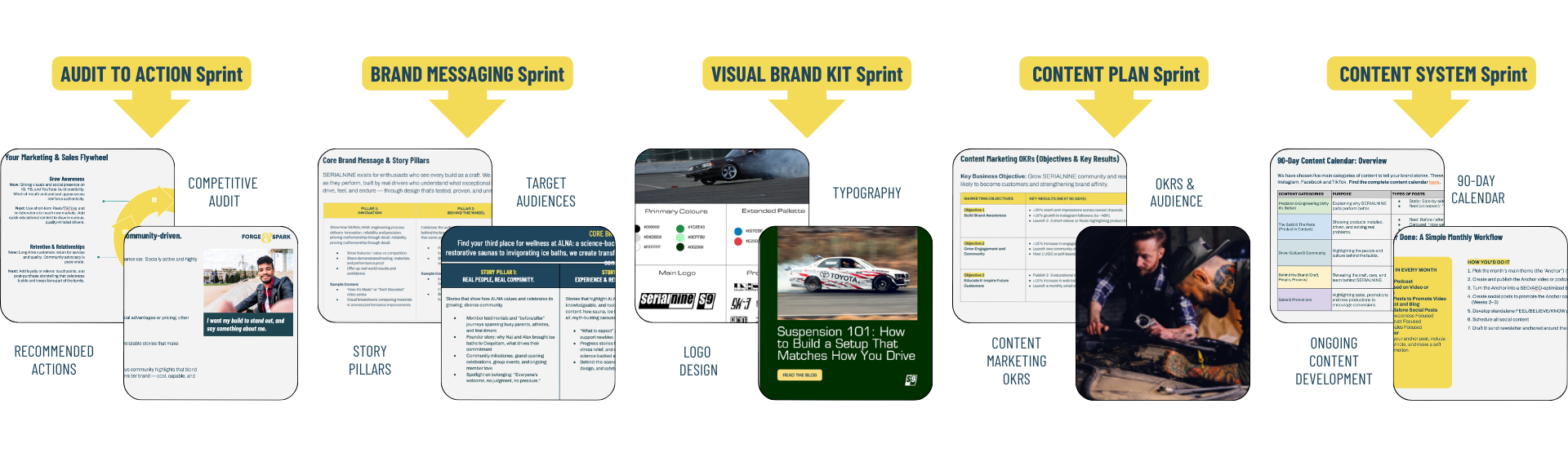 FULL STRATEGIC SPRINT SERIES INCLUDING: AUDIT TO ACTION | BRAND MESSAGING | VISUAL BRAND KIT | 90-DAY CONTENT PLAN | CONTENT SYSTEM PLAN